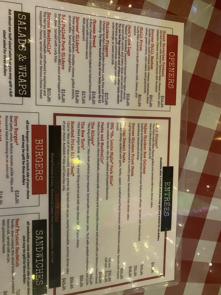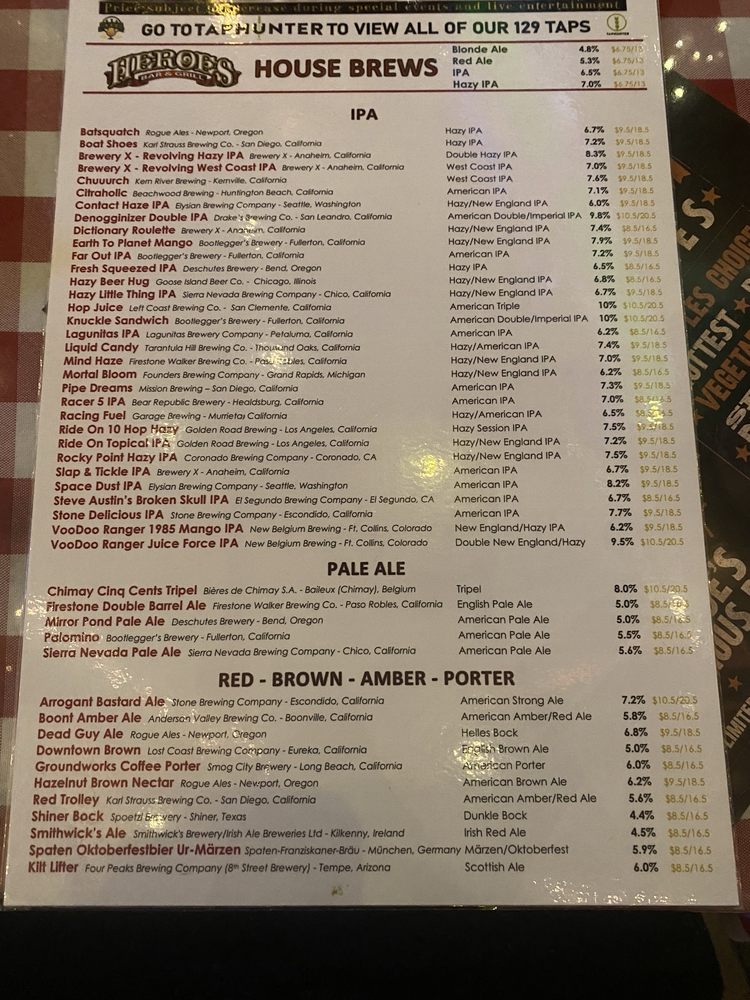 Heroes Bar & Grill, located in Fullerton, CA, offers a new American cuisine with a focus on bars. They provide a range of utilities such as takeout, reservations, and limited vegetarian options. The establishment is wheelchair accessible, accepts various payment methods including cryptocurrency, and has outdoor seating available. The ambiance is casual yet lively, making it ideal for groups, kids, and lunches or dinners. With features like garage parking, free Wi-Fi, and a full bar, Heroes Bar & Grill caters to a diverse clientele. Patrons have praised the generous portion sizes of their food and drinks, along with the interesting decor that adds to the overall dining experience. The menu includes classic favorites like burgers, wraps, meatballs, and various appetizers, all served by friendly and attentive staff. Overall, Heroes Bar & Grill offers a welcoming environment for a satisfying meal.